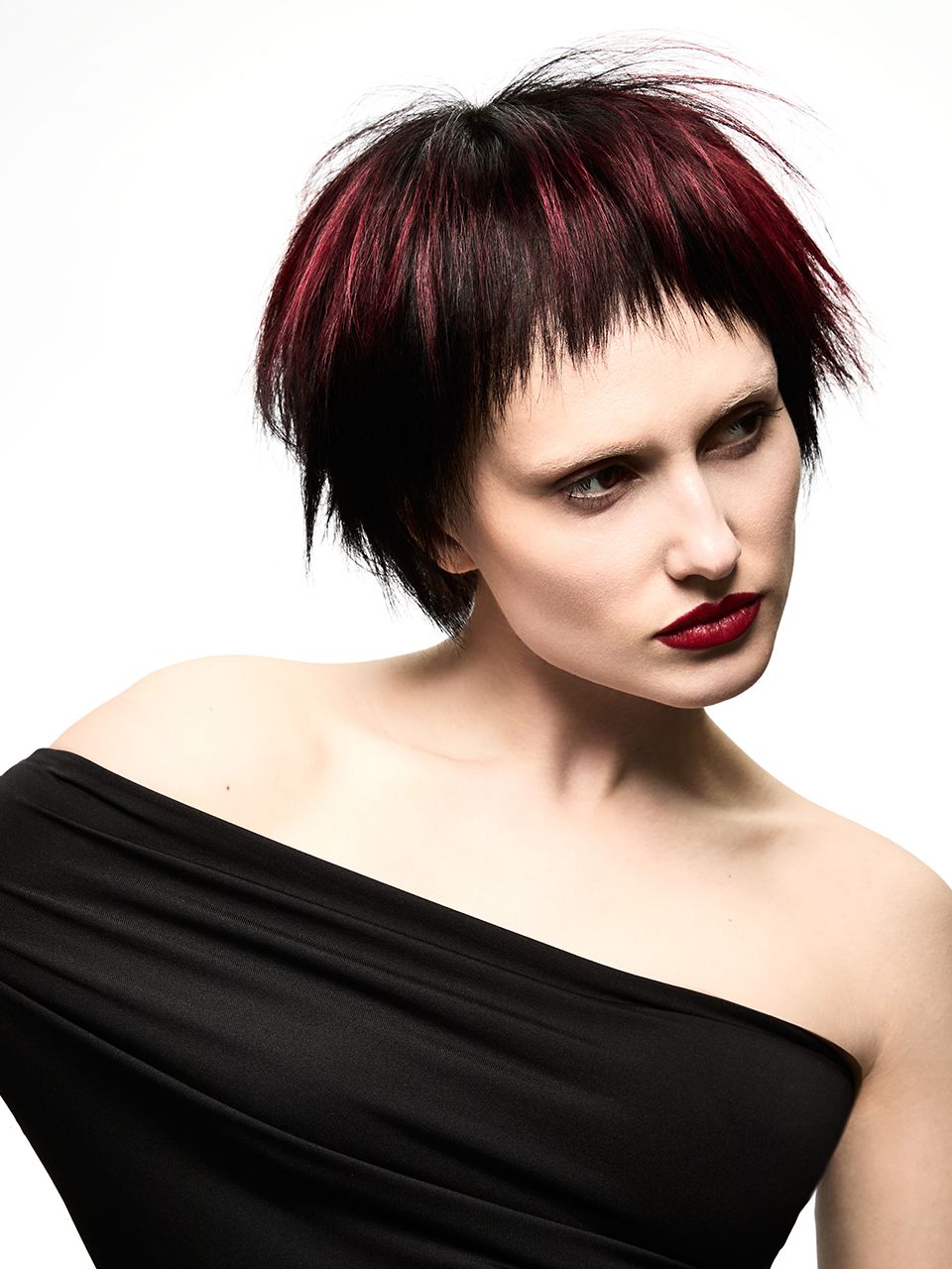 „Cerise Noire" präsentiert Simons renommierte vielfältige Fähigkeiten und seinen visionären Ansatz und kombiniert auf raffinierte Weise lebendige und tiefgründige Rottöne mit hochtechnischen Haarschn