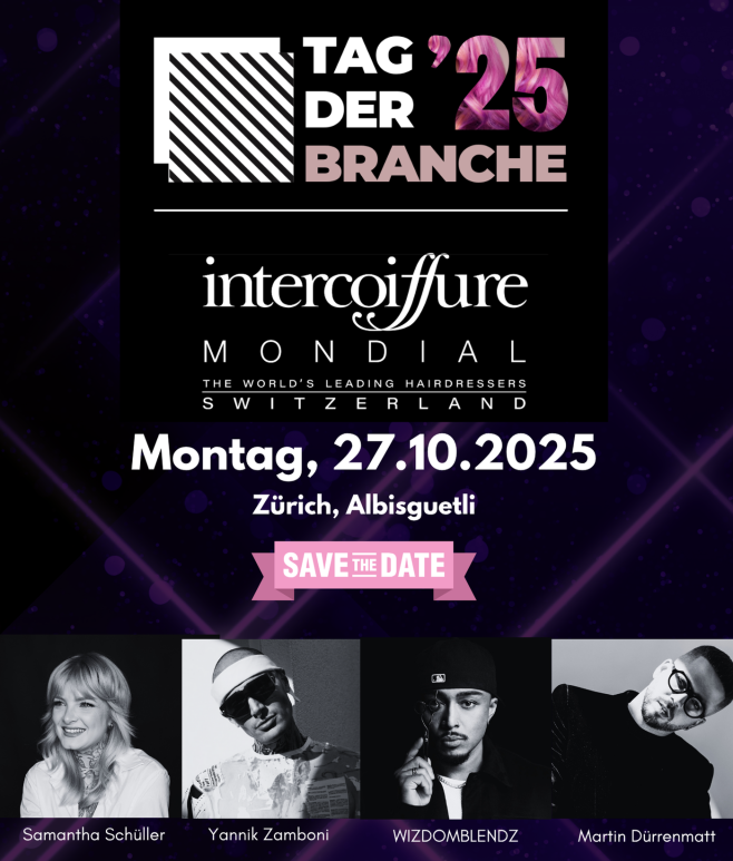Am 27. Oktober 2025 wird Zürich zum Treffpunkt der Schweizer Coiffeur- und Beautybranche: Intercoiffure Suisse lädt zum Tag der Branche 2025 (TdB'25) ins traditionsreiche Albisgütli und versammelt dort nationale wie internationale Top-Acts, Coiffeure, Industriepartner und kreative Köpfe der Branche. Das Motto: „The Creative's Place to Be" – ein Statement für den Wandel der Branche.