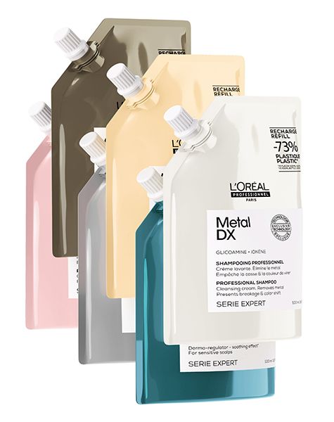 Im Rahmen der Initiative „Hairstylists for the Future" bietet L'Oréal Professionnel Paris eine nachhaltige Alternative zu den Salon-Kabinettfl aschen: Die praktischen 1000-ml-Nachfüllbeutel reduzieren nicht nur den Plastikverbrauch um 44 Prozent, sondern sind auch günstiger (15 Prozent/ml) als die Flaschen. Die Refi lls sind für folgende Linien der L'Oréal Serie Expert erhältlich: Absolut Repair, Pro Longer, Vitamino Color Spectrum, Absolut Repair Molecular und Metal DX.